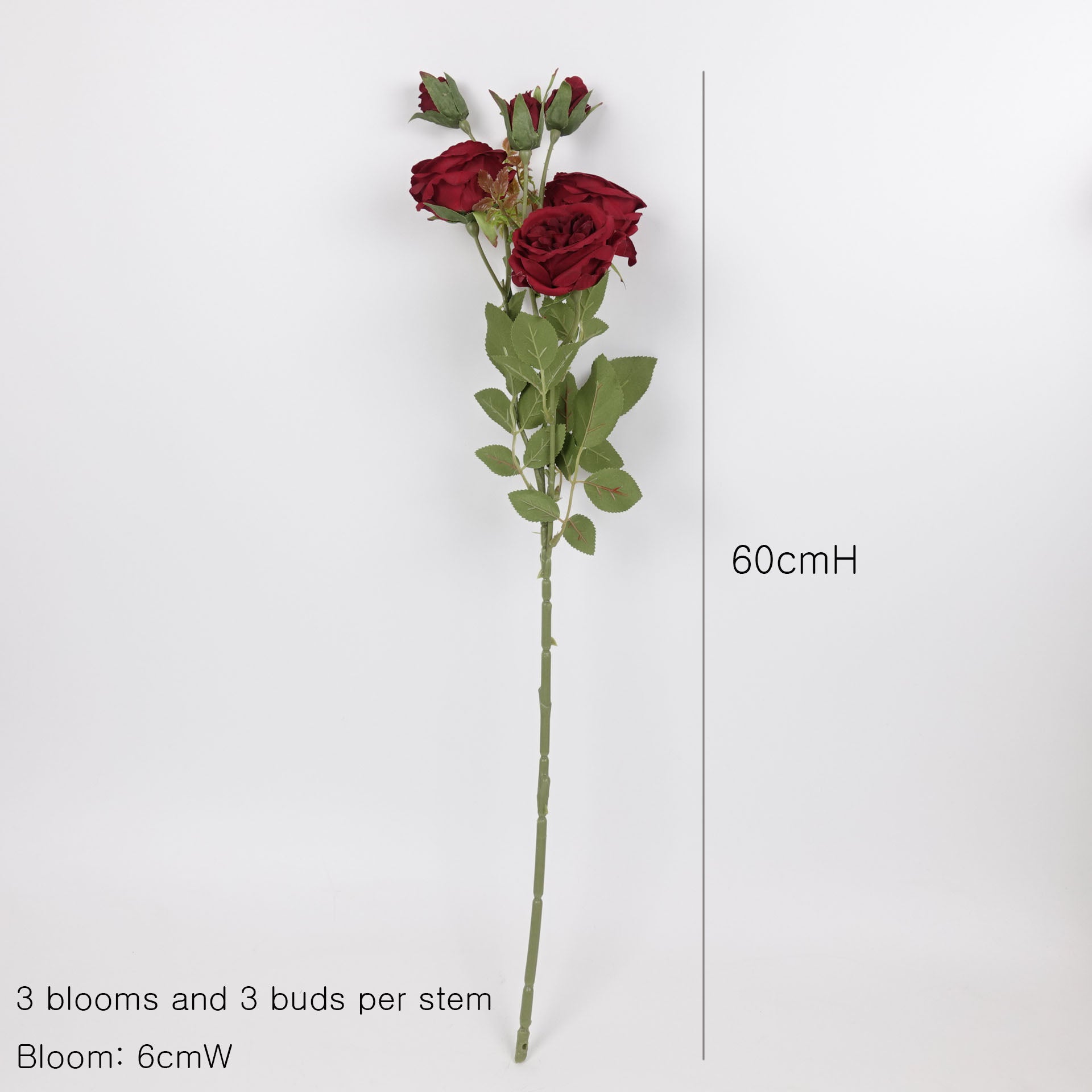 Size: 60cmH, 3 blooms and 3 buds per stem, bloom: 6cmW (size measures at its widest point)