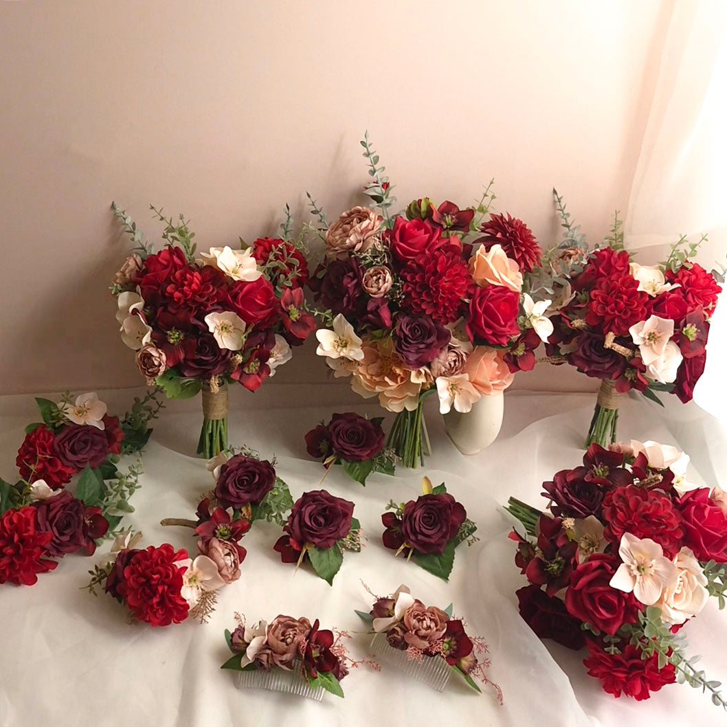 Designed and hand-tied by Jfloral, this lovely artificial flower arrangement/bouquet is perfect for a bride or bridesmaid, and it will also add a touch of beauty to your home, office, or special event. Just put it in a vase and enjoy.