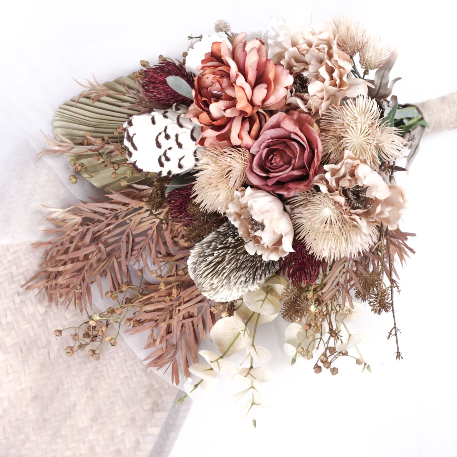 The listing is for 1 x Native Protea Banksia Peony Bouquet(supplied as a hand-tied bouquet). Styling items in photos NOT included.