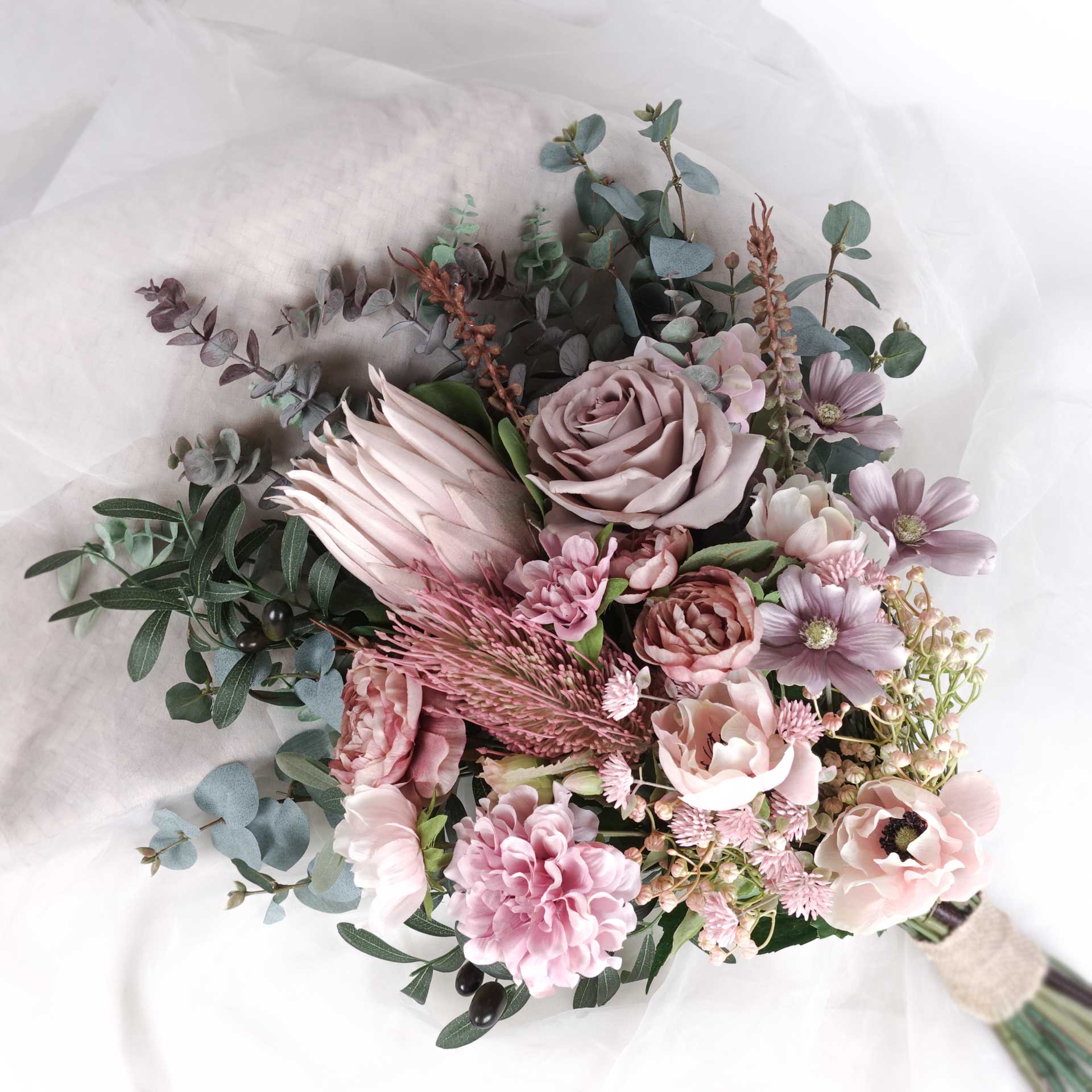 Designed and hand-tied by Jfloral, this lovely artificial flower arrangement/bouquet is perfect for a bride or bridesmaid, and it will also add a touch of beauty to your home, office, or special event. Just put it in a vase and enjoy.