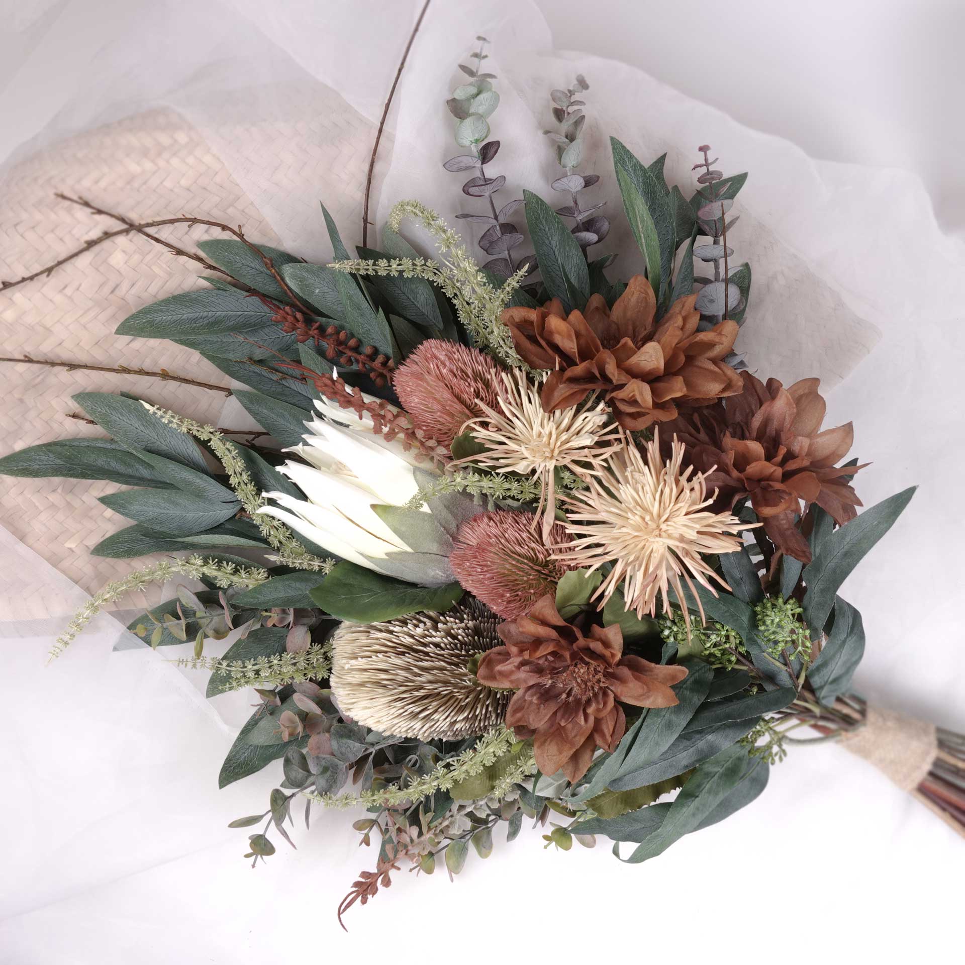 The listing is for 1 x Native Protea Chrysanthemum Bouquet(supplied as a hand-tied bouquet). Styling items in photos NOT included.