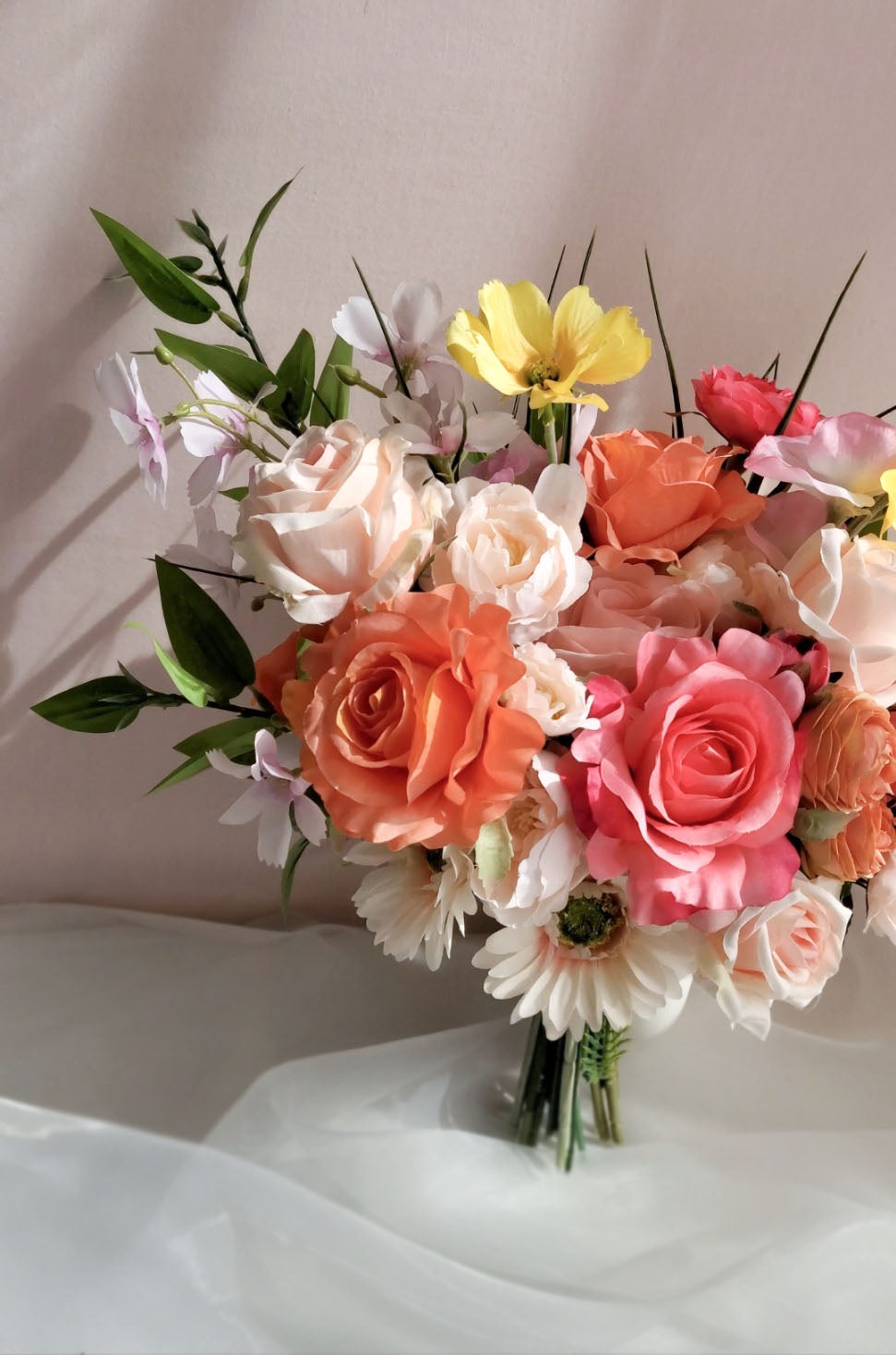 Designed and hand-tied by Jfloral, this lovely artificial flower bouquet is perfect for a bride or bridesmaid.