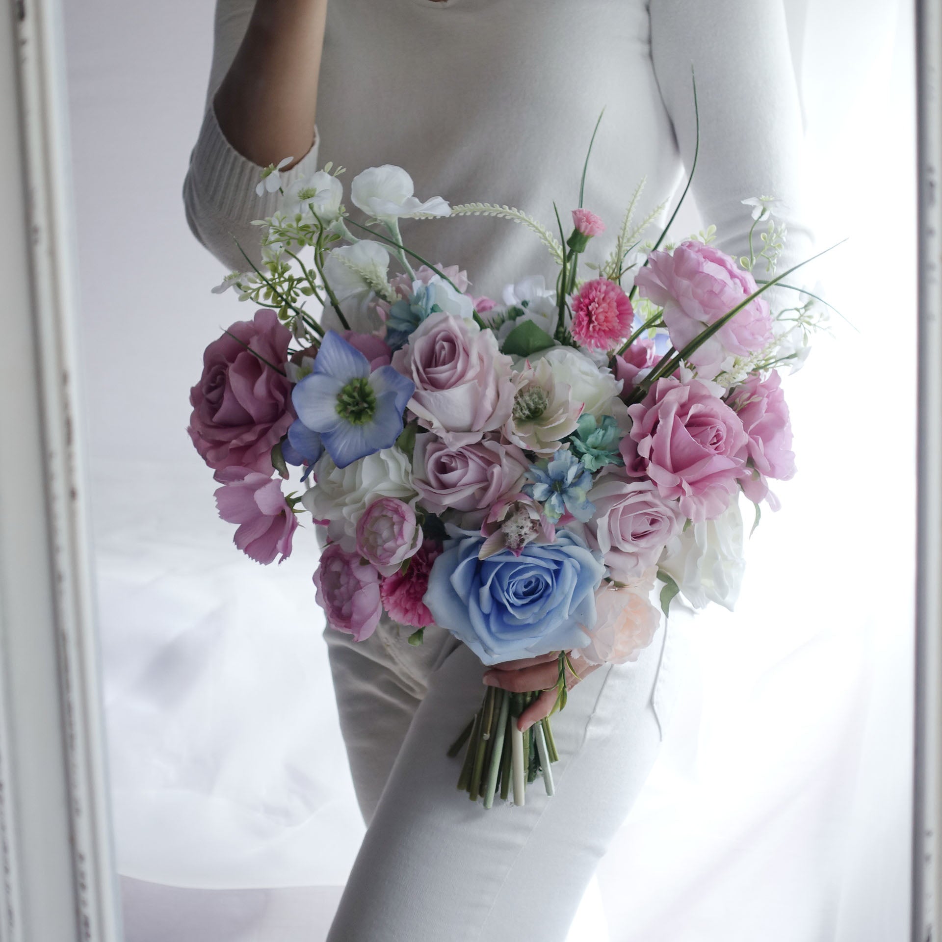 Artificial Pastel Wedding Bouquet Pink Blue Pastel Bridal Bouquet Faux Bouquet JFLORAL