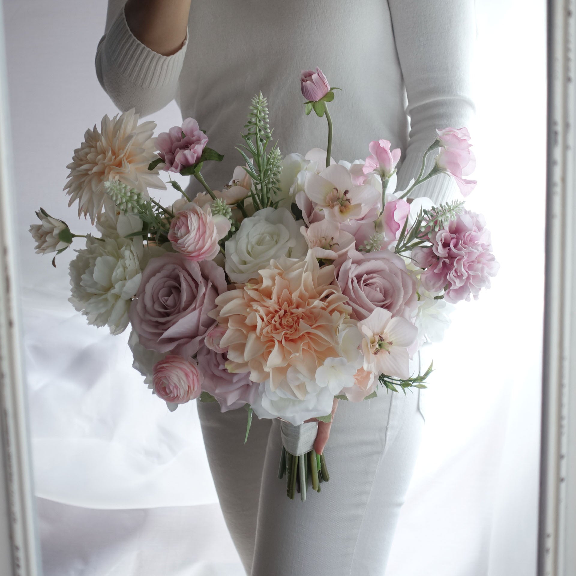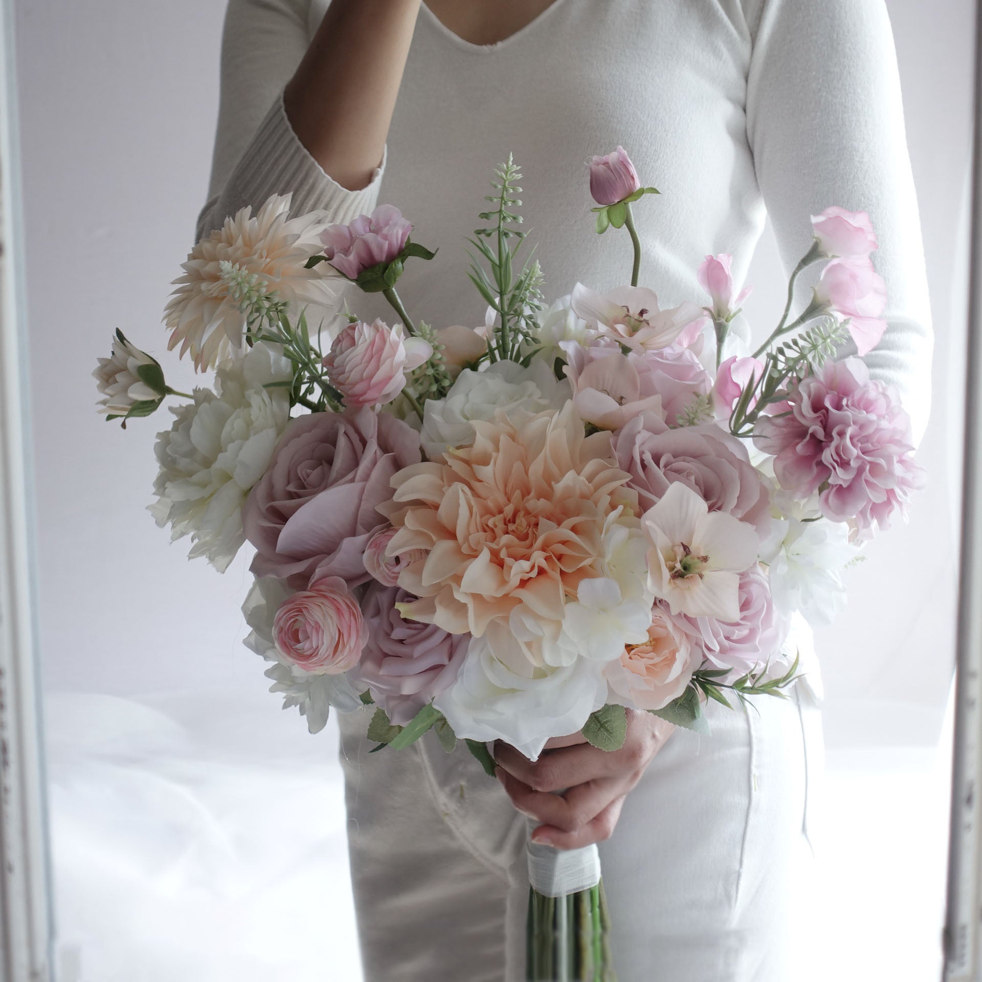 - The listing is for 1 x Rose Dahlia Bridal Bouquet (supplied as a hand-tied bouquet). Styling items in photos NOT included.