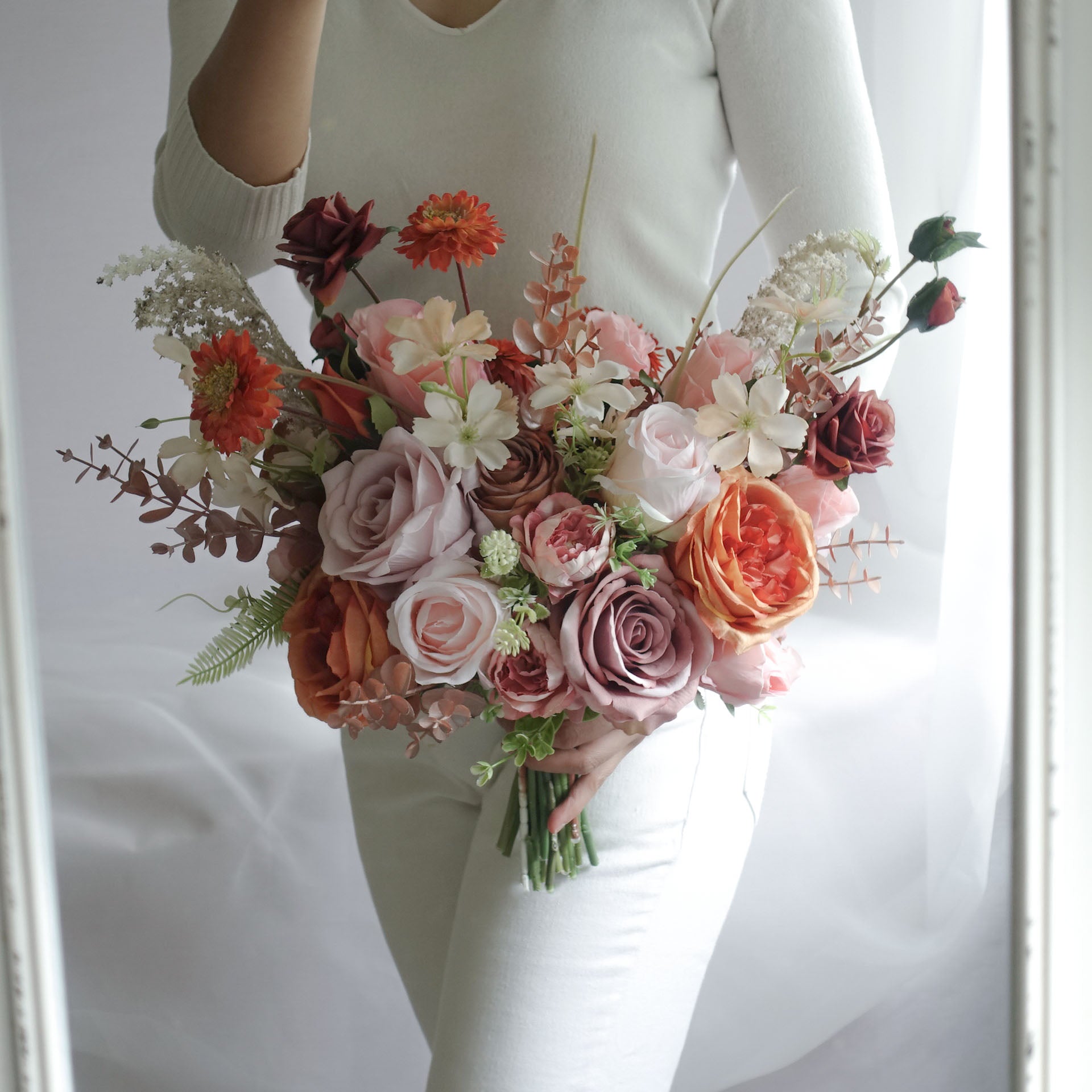 - Product & Type: Artificial Wedding Bouquet / Pink Mauve Rust Rose Wedding Bouquet