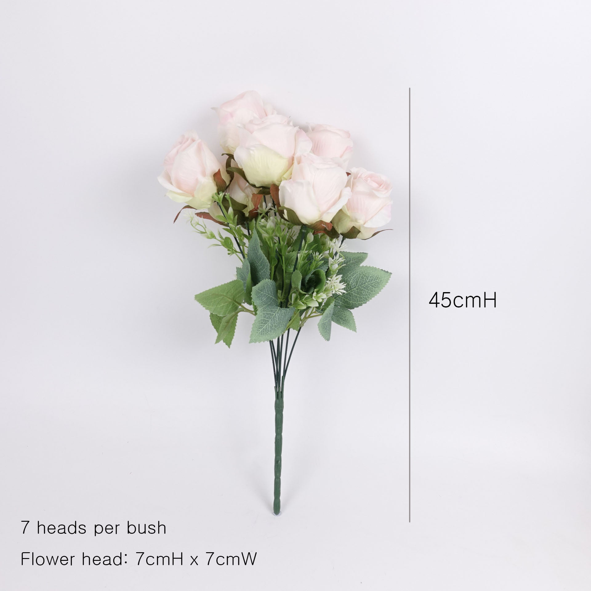 Size: 45cmH / Bloom: 7cmW x 7cmH (size measures at its widest point) / 7 blooms per bush
