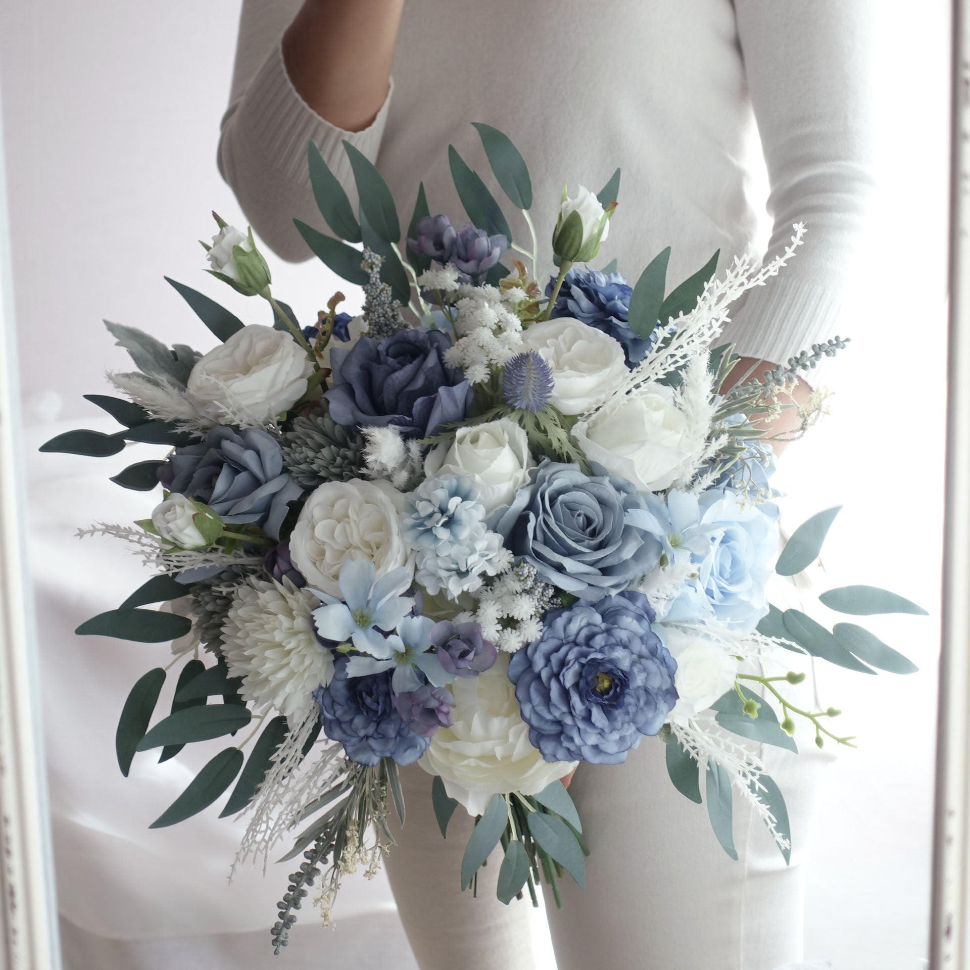- Product & Type: Artificial Wedding Bouquet / Blue White Rose Wedding Bouquet