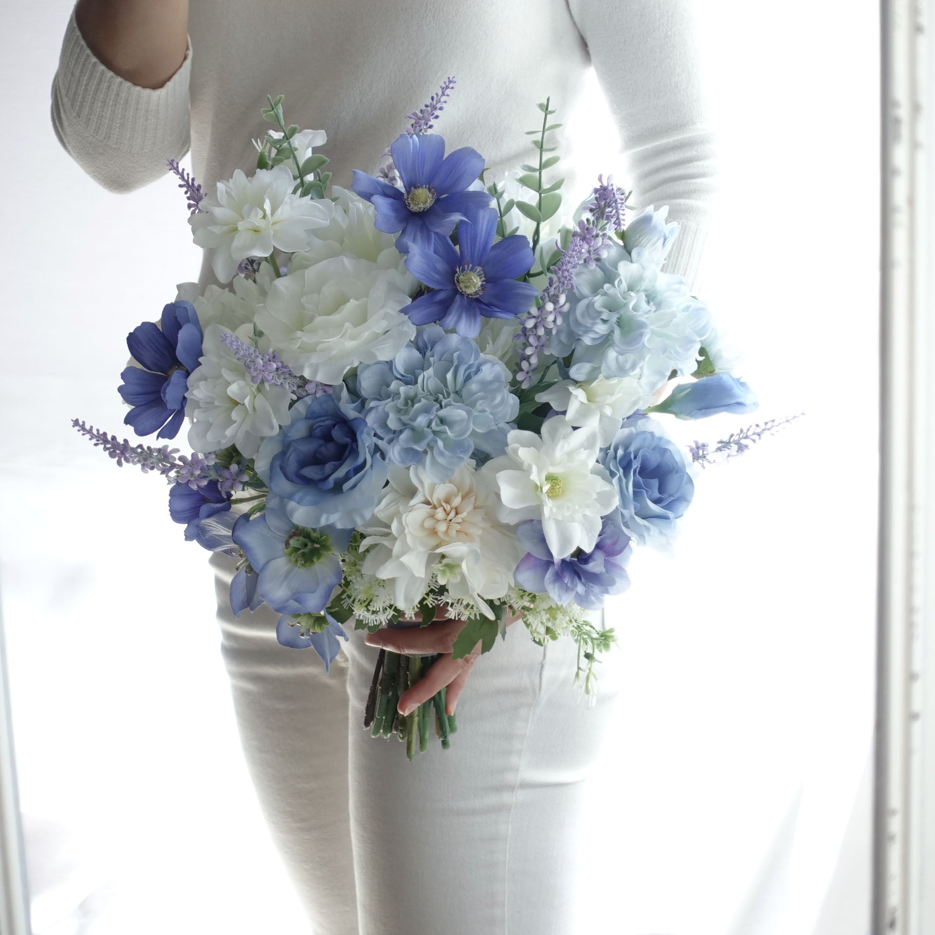 - The listing is for 1 x Dahlia Peony Blue Bouquet(supplied as a hand-tied bouquet). Styling items in photos NOT included.