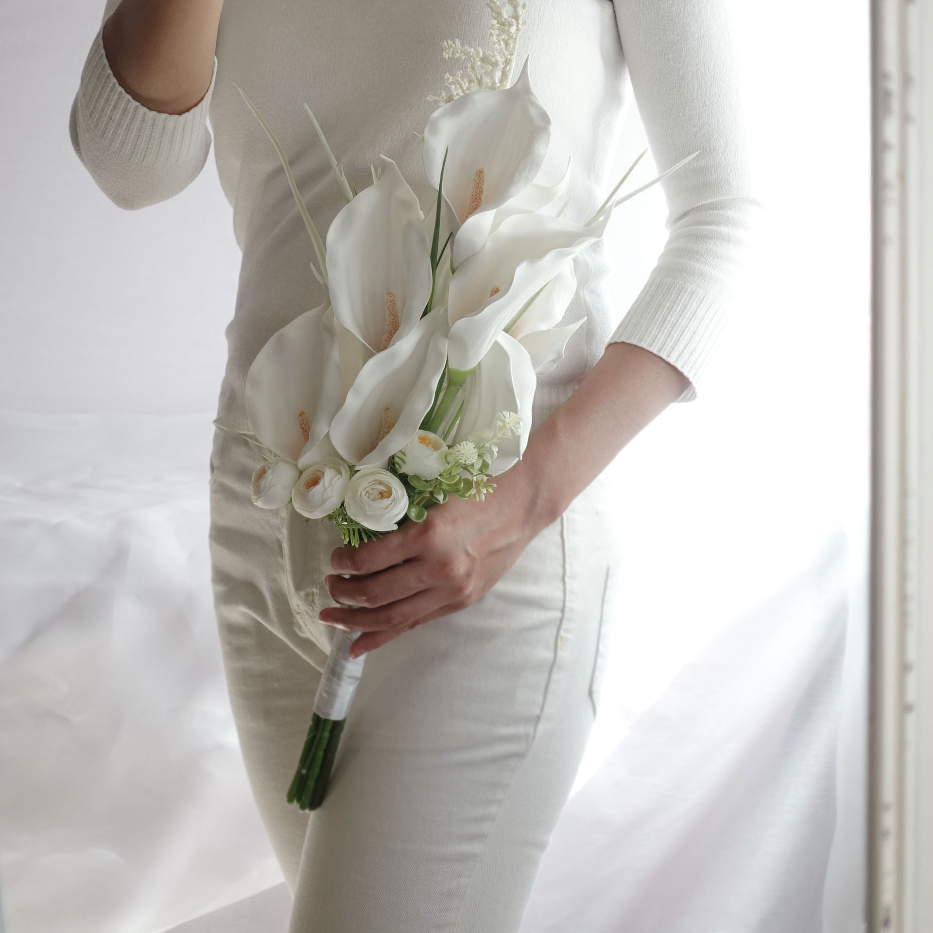 - Product & Type: Artificial Wedding Bouquet / Calla Lily Pampas Wedding Bouquet