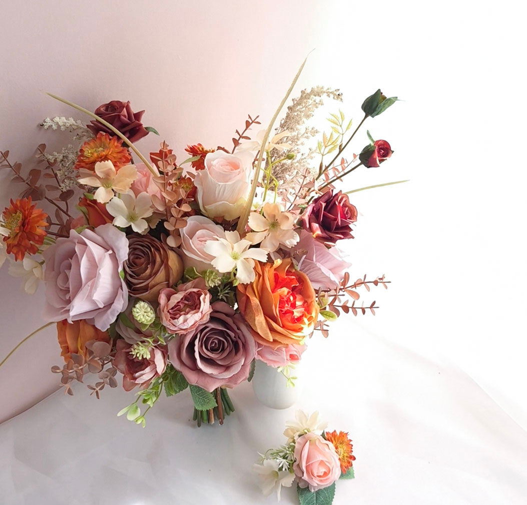 • Product & Type: Artificial Wedding Bouquet / Pink Mauve Rust Rose Wedding Bouquet